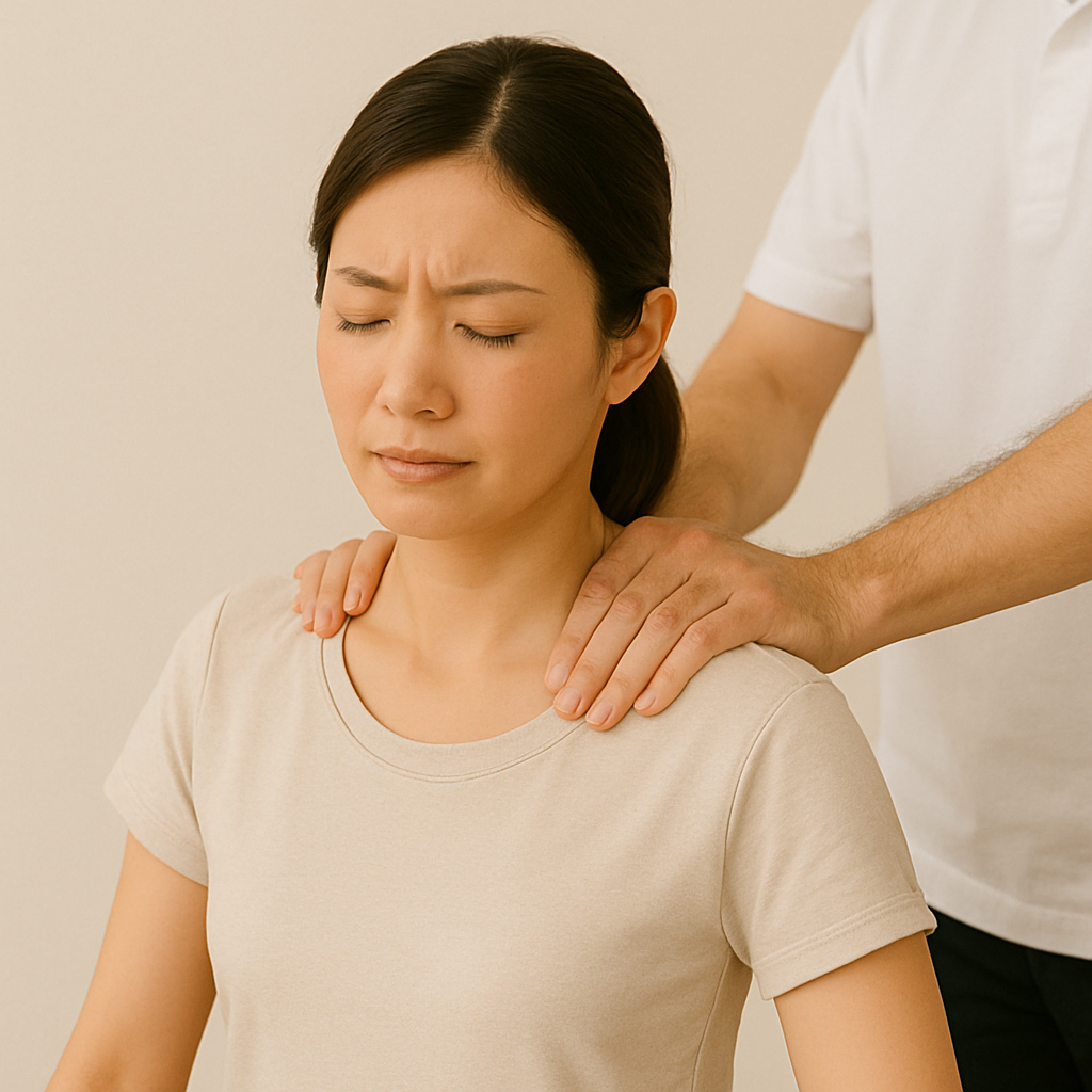 とくに40代以降の女性では、更年期のホルモンバランスの変化が加わり、肩や首に重だるさ・痛みを感じやすくなる傾向があります。